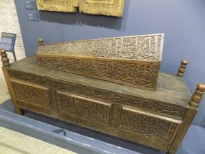 Sergideki bu dolap, yüzeyindeki geometrik kafes sistemiyle dikkat çeker. Bu sayede görsel bir denge kurar. Ayrıca İslam sanatında sık görülen düzen fikrini de vurgular. Desenler, sonsuzluk düşüncesini ima eder.